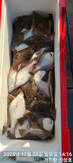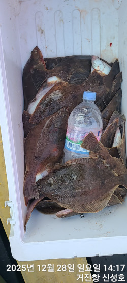 아침 9시30분 까지 가자미 구경도 못하여조기철수 해야할까 생각중 한마리 두마리 올라 오더니어군 형성되며 손맛들 보았습니다15~~~8키로 정도 했네요바람불고 추운 날씨에 수고들 많으셨습니다 내일 13일 화요일 주의보라 휴무하고14일 수요일 부터 출조하니 연락들주세요 *** 거진항 뉴신성호 예약 안내 ***예약문의 : 010-2442-6471오시는길 : 강원도 고성군 거진읍 해오름해변길 185홈페이지 : https://shinseong.sunsang24.com/
